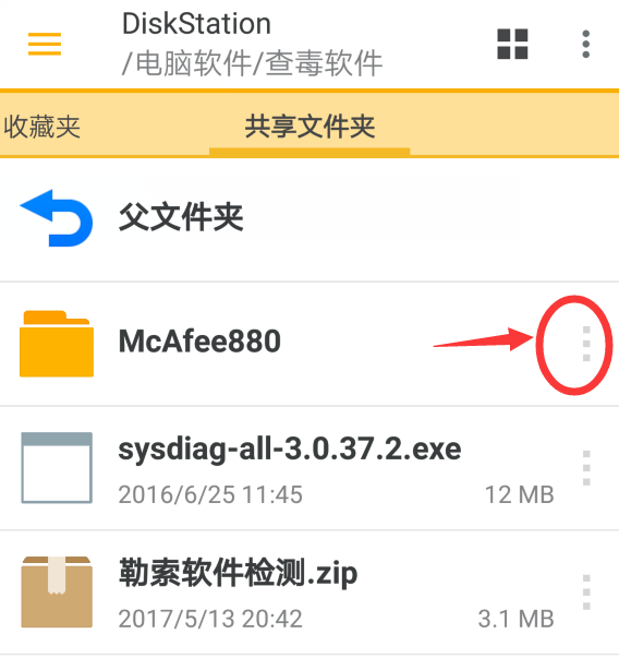 1、找到所需的文件或文件夹,点击右边的虚点;
