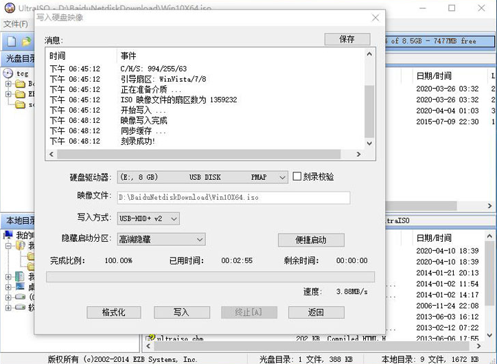 制作启动U盘,建议用UltraISO选择U+V2 高端隐藏写入U盘,不容易中毒,而且写入完成后格式化可见分区为NTFS格式(写入完成后默认是FAT32),一是方便放大文件,二是启动选项不会出现两个UEFI选项,实测量产能用,但是不如U+V2 高端隐藏兼容性好。介于很多友友对UltraISO也不熟悉使用,这里做个教程吧。
