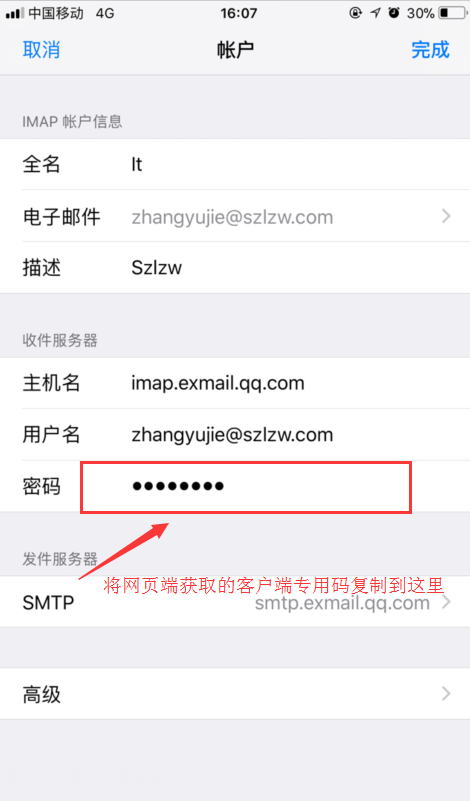 在此处填入客户端专用密码,如果需要关闭安全登录,在网页端直接关闭之后,将客户端密码修改为邮箱密码即可使用。