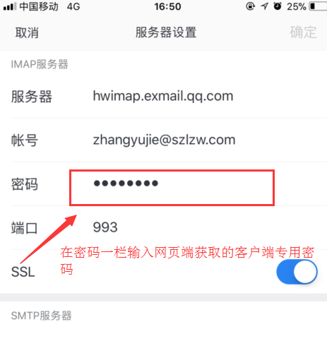 使用其他客户端的设置方式与上述方式相同,找到设置账号密码的地方,在密码一栏输入网页端获取的客户端专用密码。