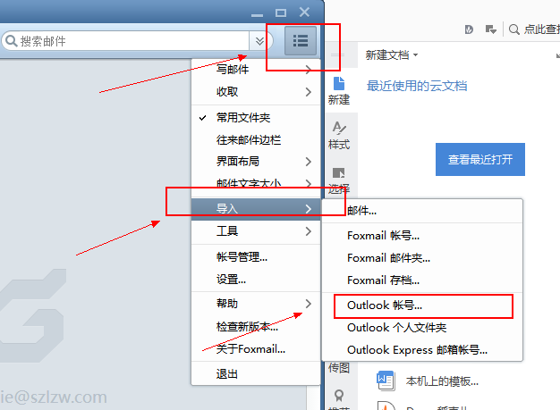 Foxmail为腾讯邮箱专属客户端,功能以及体验会更好,欢迎大家使用foxmail;对于使用OUTLOOK的同事,foxmail可以一键将outlook邮件导入到foxmail中: